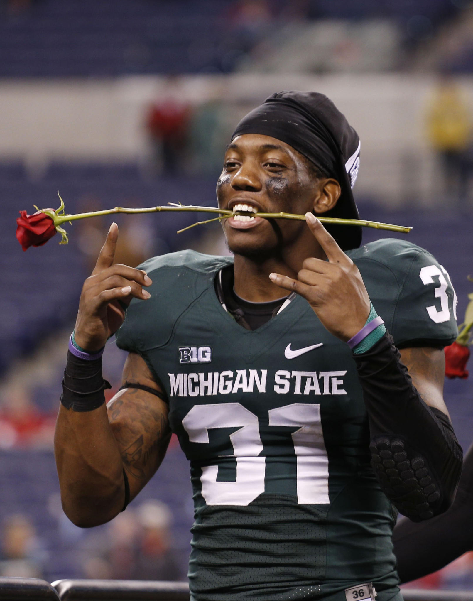 Dantonio is in step with the Stanford strategy when he looks for shutdown cornerbacks. In 2013, Michigan State lined up senior Darqueze Dennard and sophomore Trae Waynes as corners. They don’t have Sherman’s size (Dennard is 5-11, 197, Waynes 6-1, 185), but they have athleticism and coverage skills.